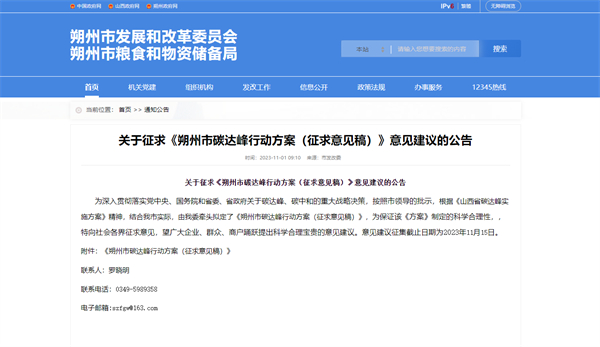 關(guān)于征求《朔州市碳達(dá)峰行動方案(征求意見稿)》意見建議的公告。