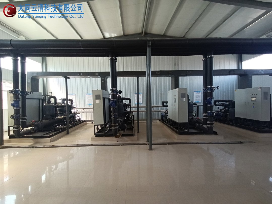 和尚嘴煤礦乏風(fēng)取熱項(xiàng)目項(xiàng)目位于山西大同,配置4臺(tái)兩級(jí)取熱中溫型乏風(fēng)熱泵機(jī)組,分別為2臺(tái)KLMK-STS/S-550/137和2臺(tái)KLMK-STS/S-480/150,供水溫度≥50℃,用于井口新風(fēng)加熱和洗浴熱水